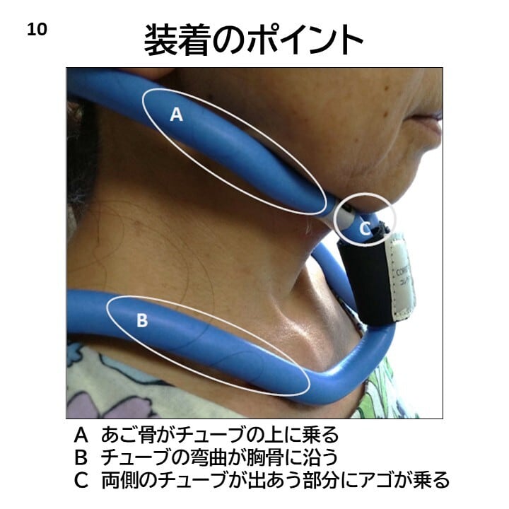 コレクトウェルは、軽度の首下がり症状に対応する首周りの保持具です。ご使用前に、以下のポイントをご確認ください。