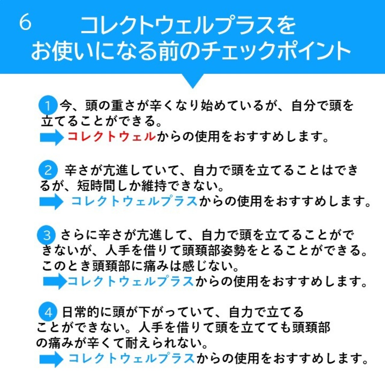 コレクトウェルプラスは、自分の力で頭の重みを支えることが辛くなり始めた方のための商品です。